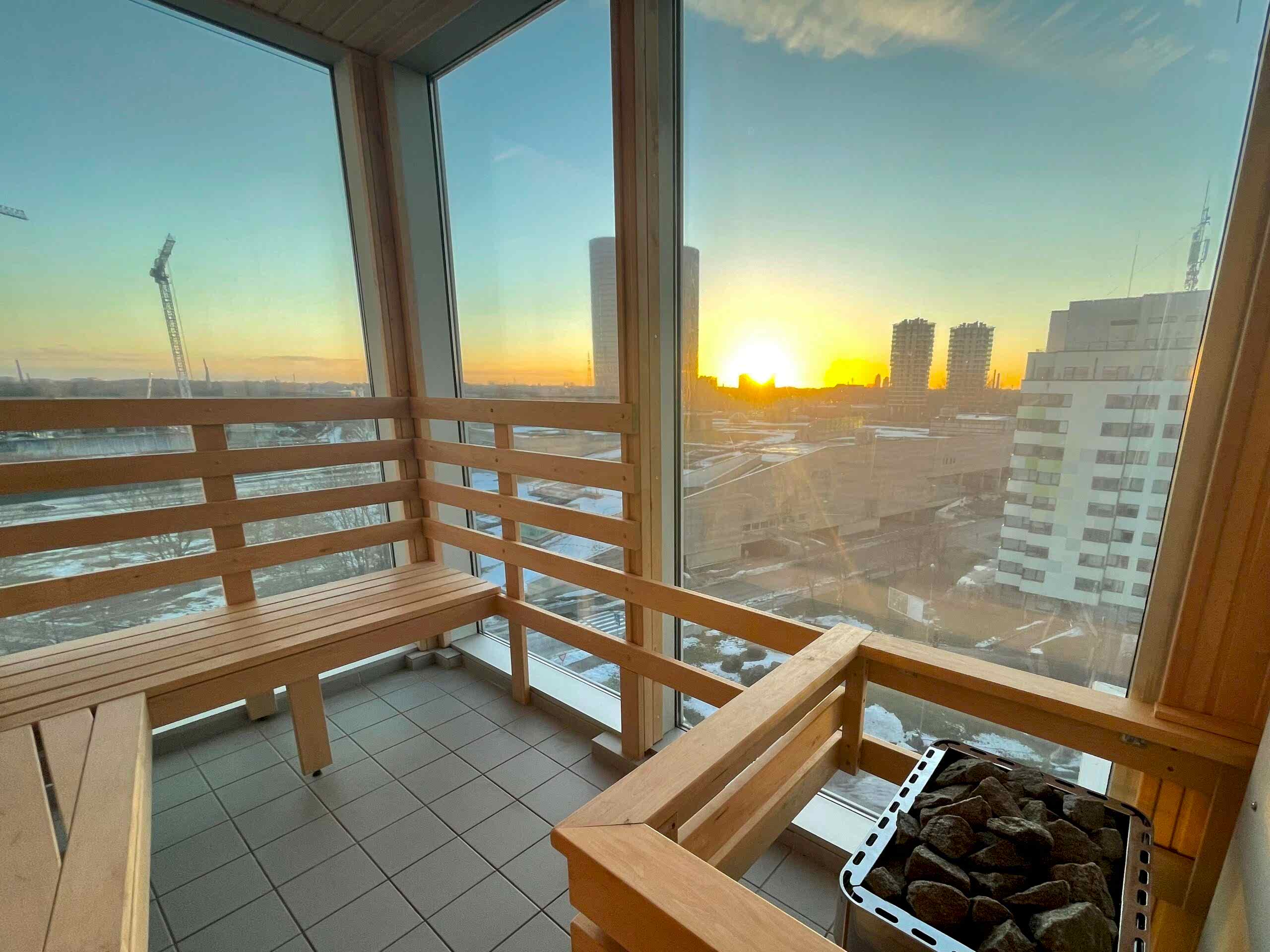 Klondaika вид из сауны на 9-м этаже позволяет расслабиться, наблюдая за оживленным миром.