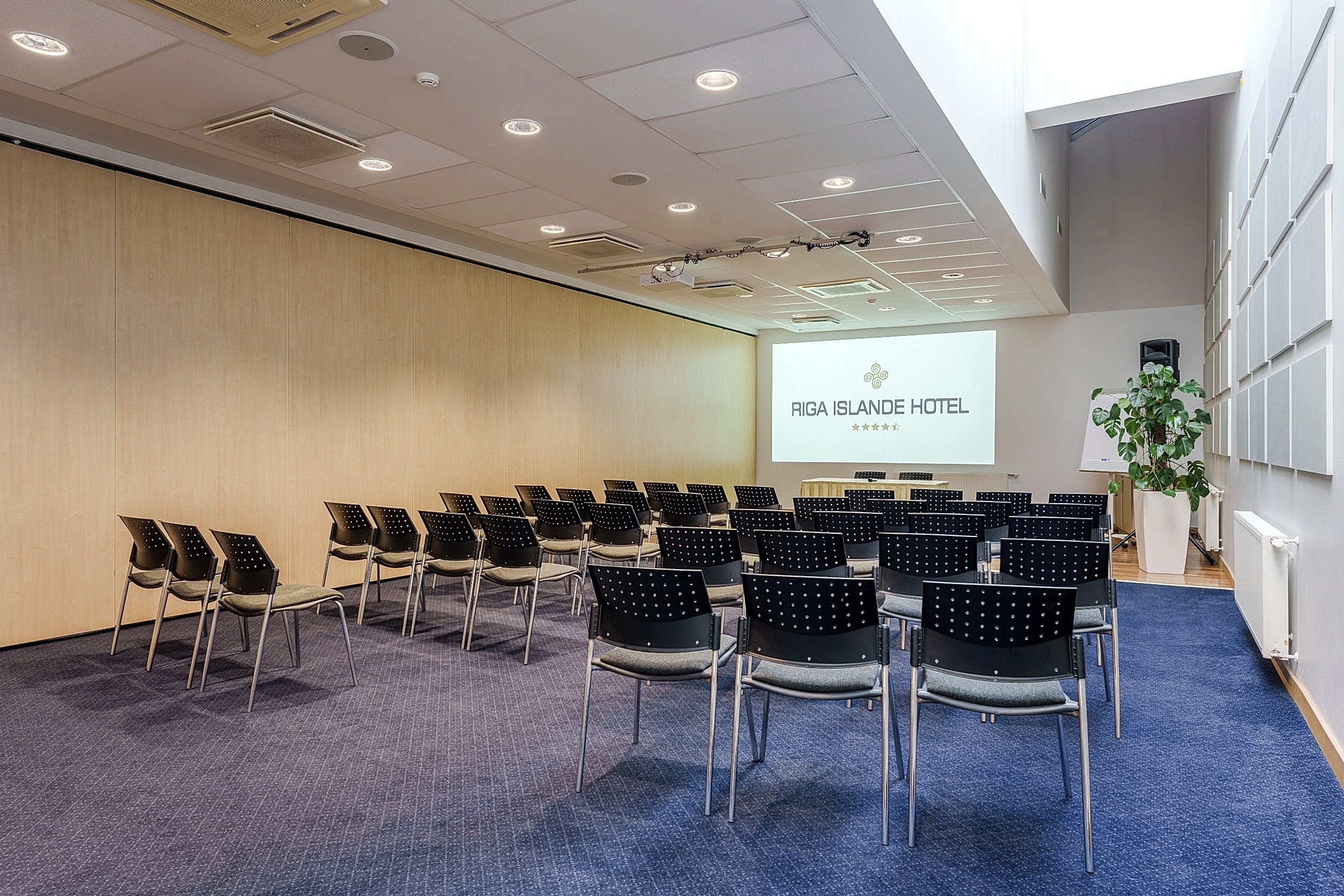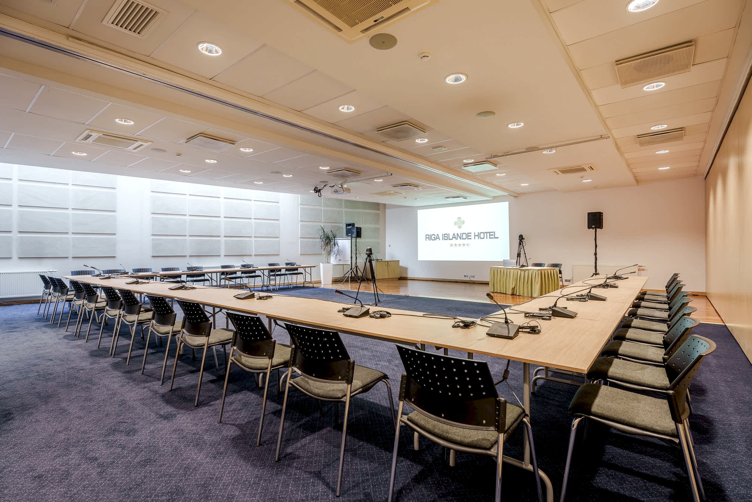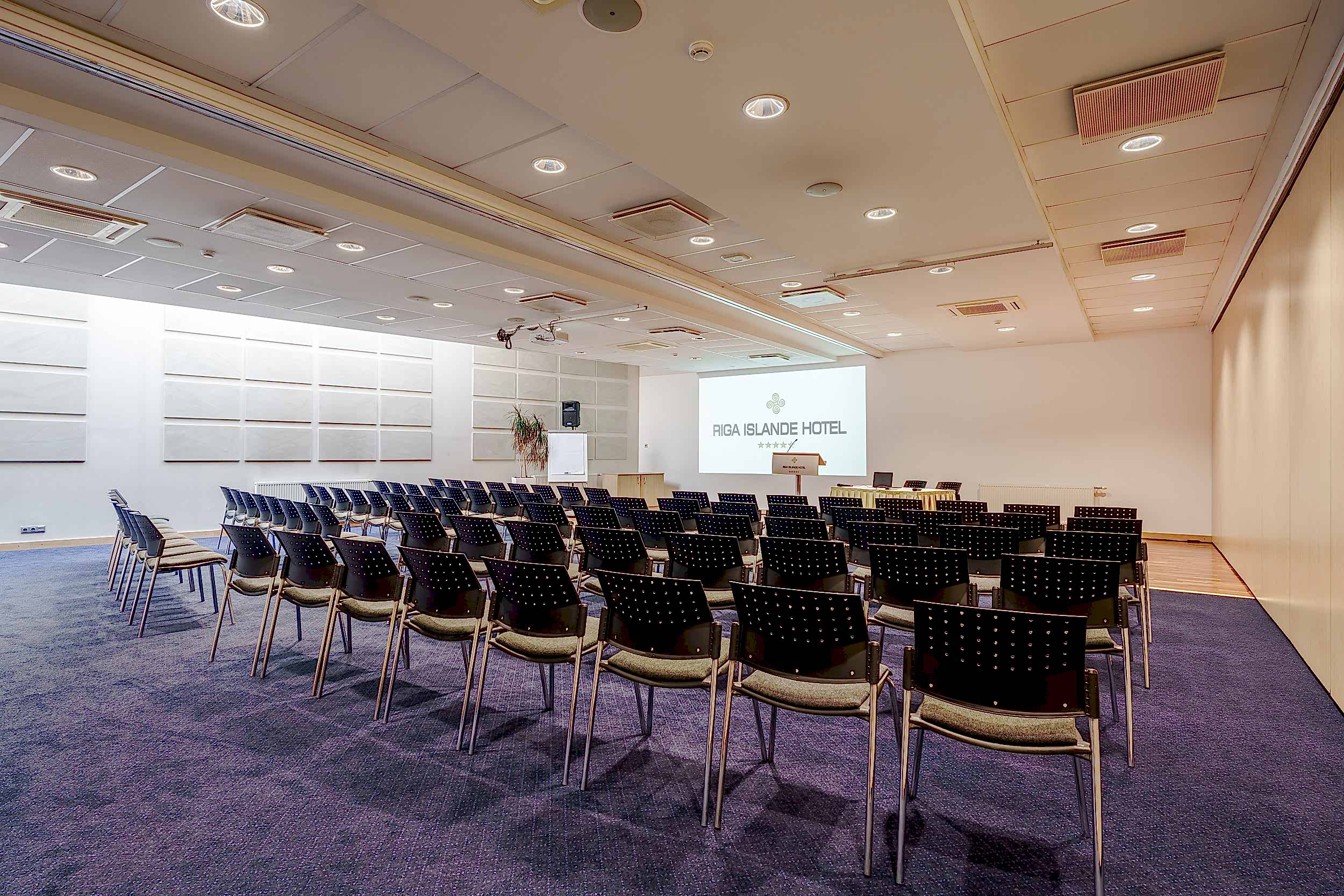 The Riga Islande Hotel has a large 240m2 conference Klondaika with a total capacity of up to 200 people. The room is transformable and dividable by walls making it a unique place to quickly set up for group works.