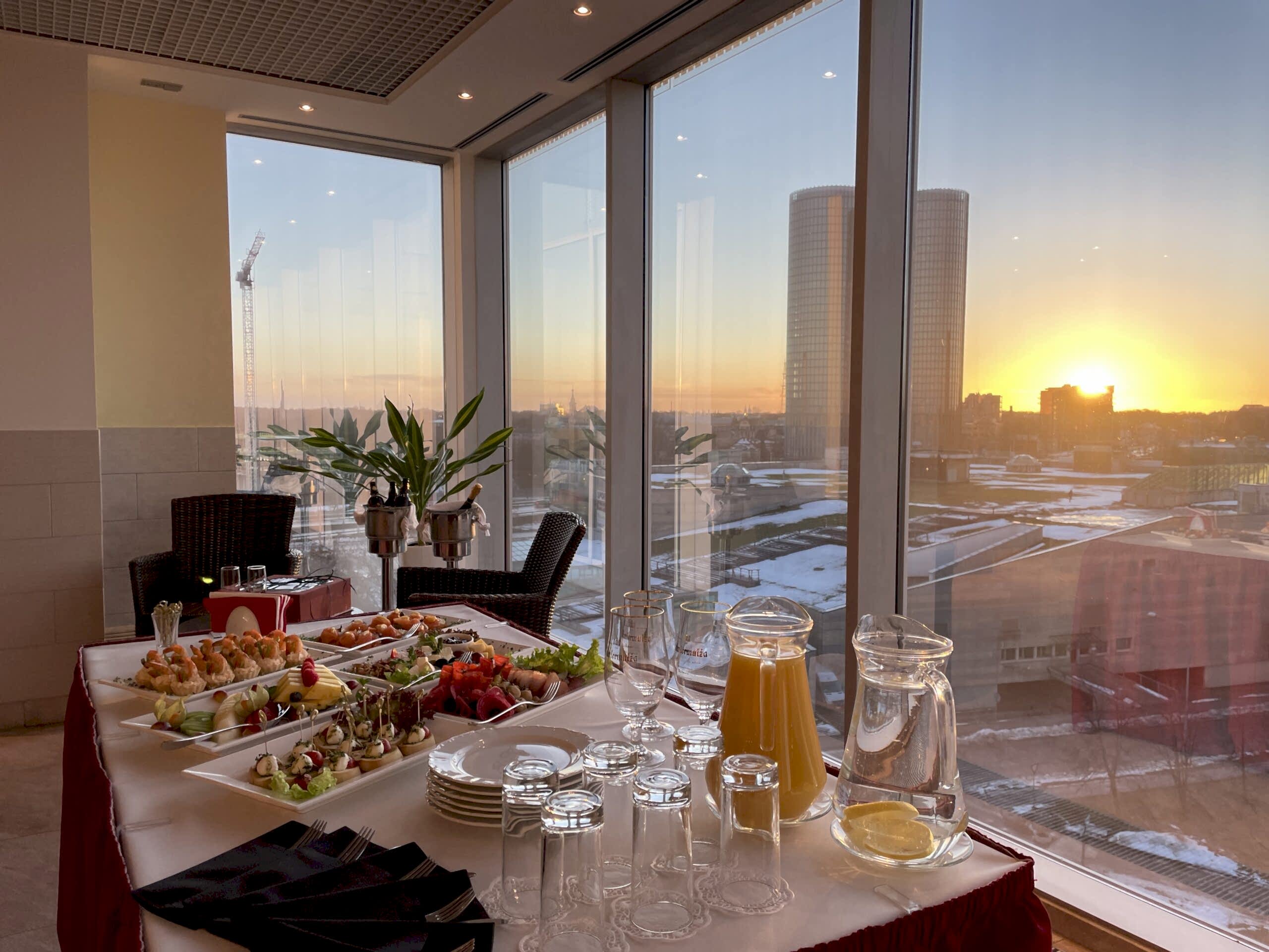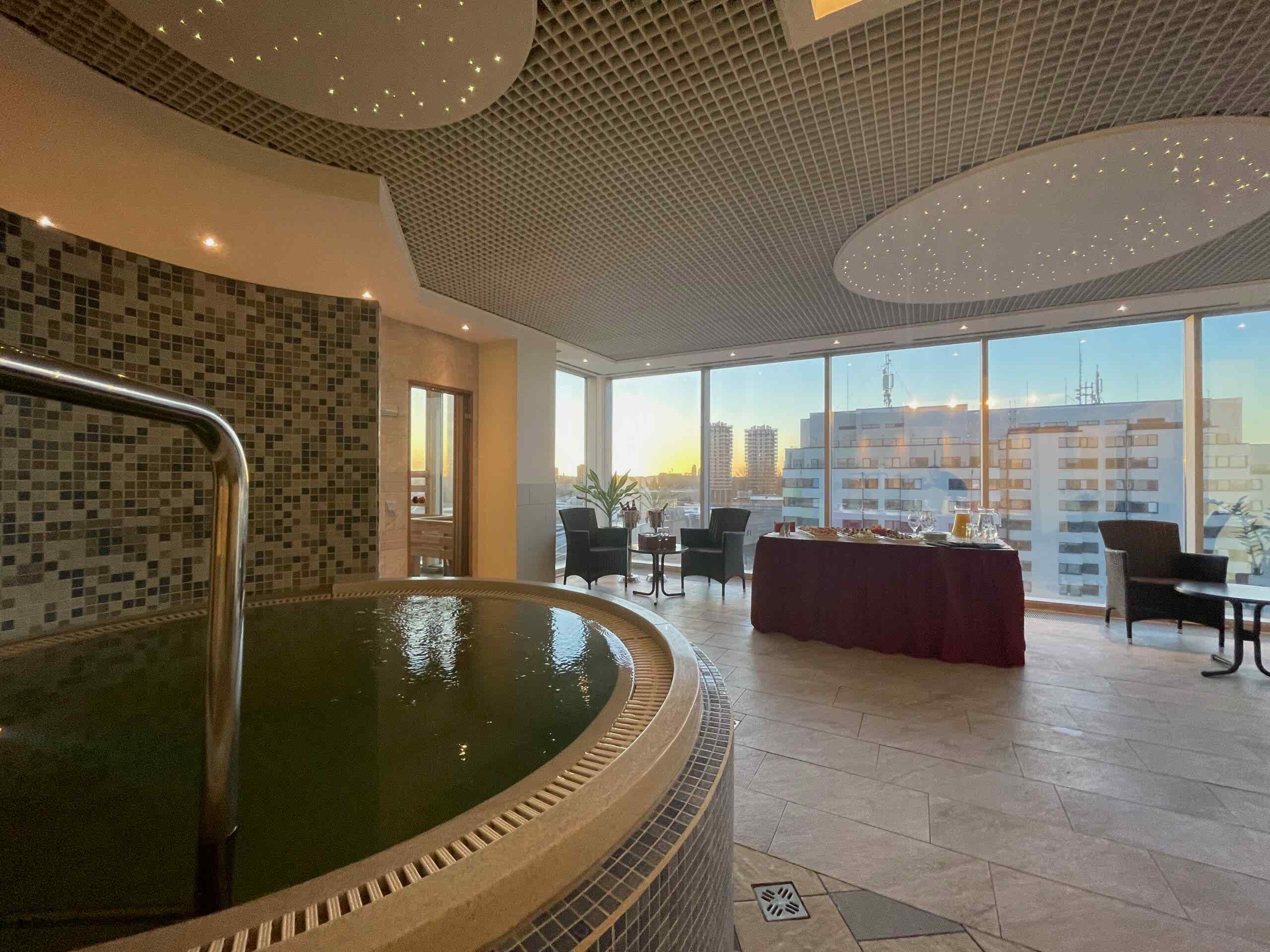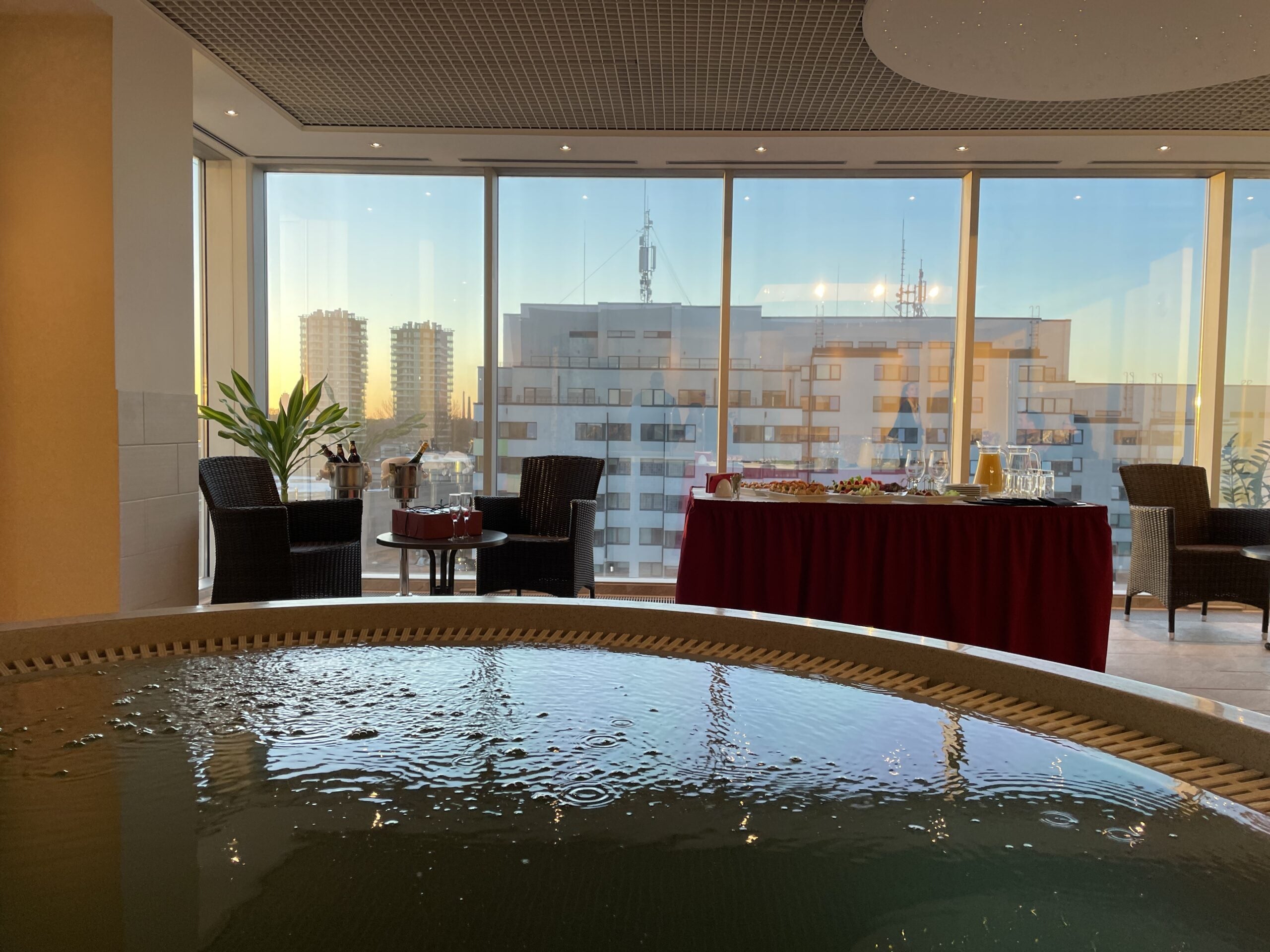 An open view from sauna on the 9th floor provides Klondaika while viewing the busy world running its course.