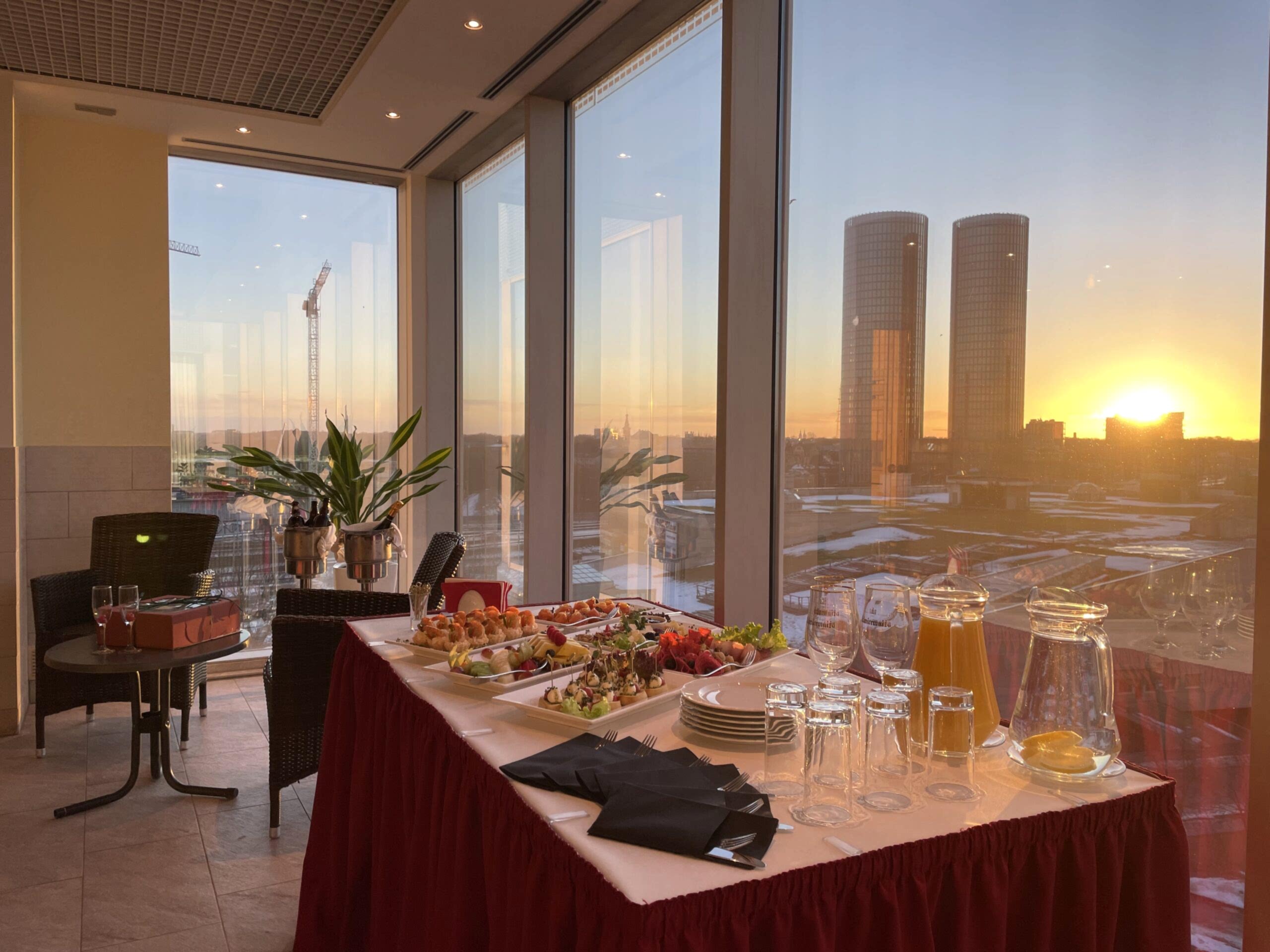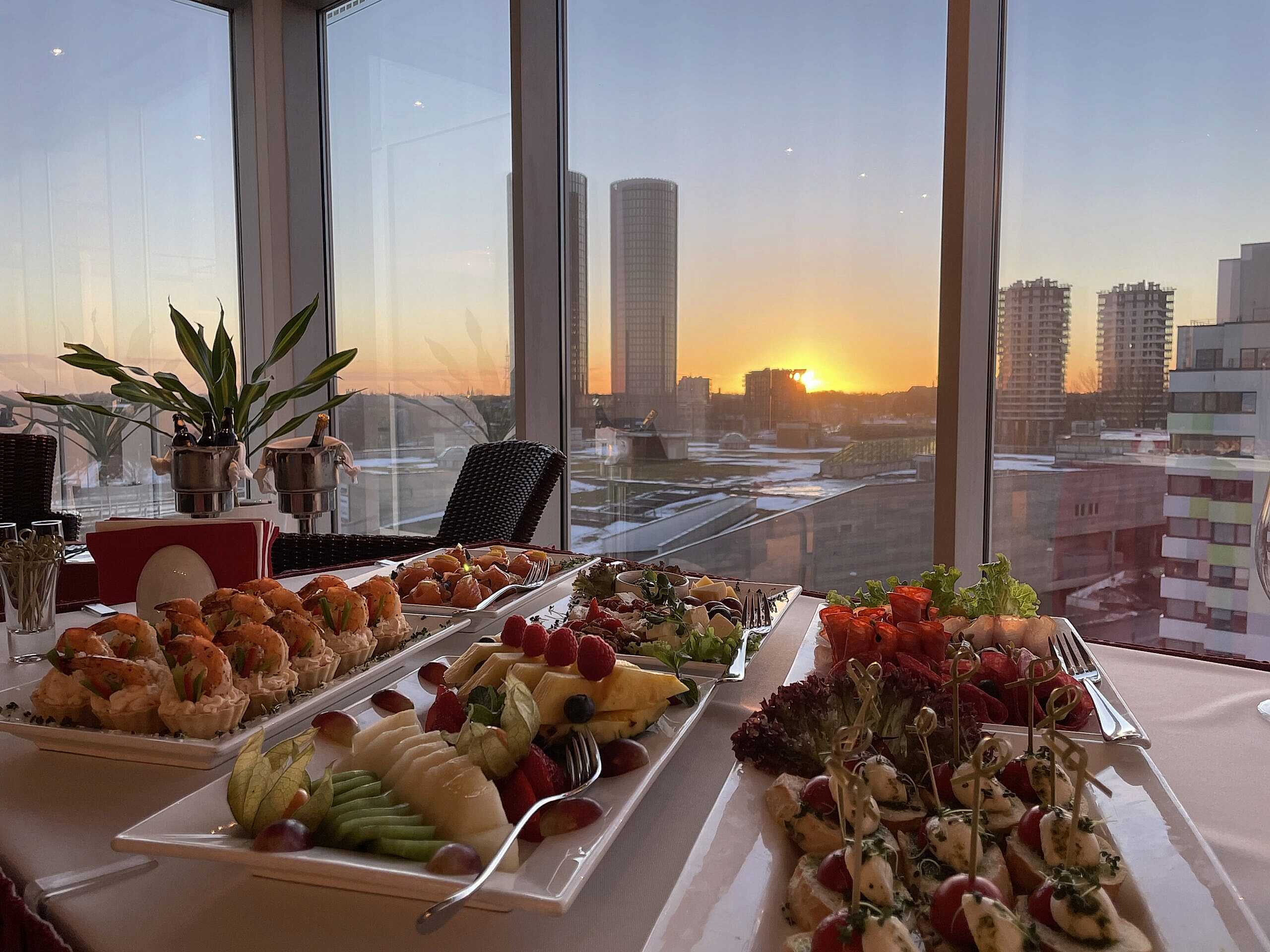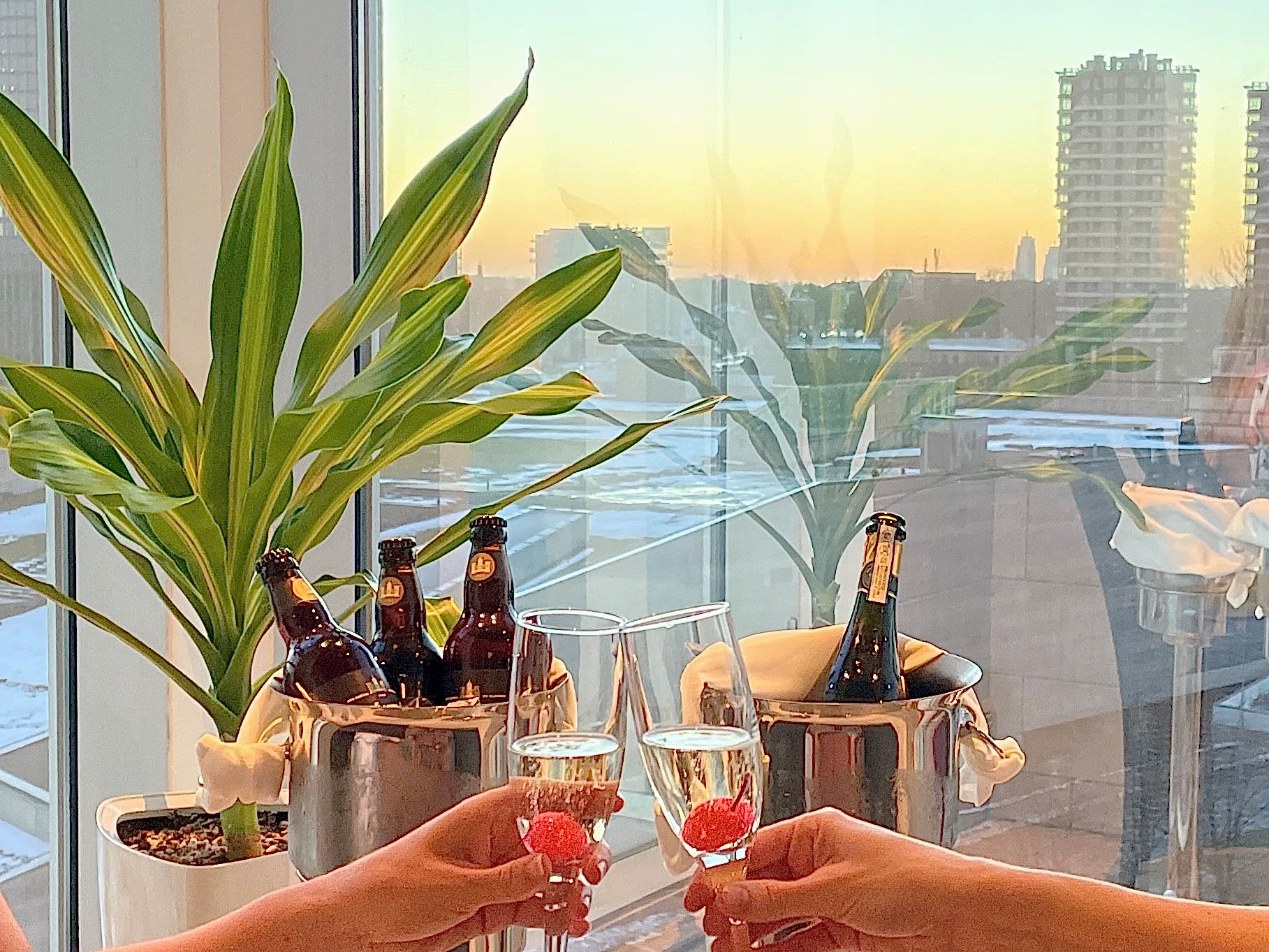 An open view from sauna on the 9th floor provides Klondaika while viewing the busy world running its course.