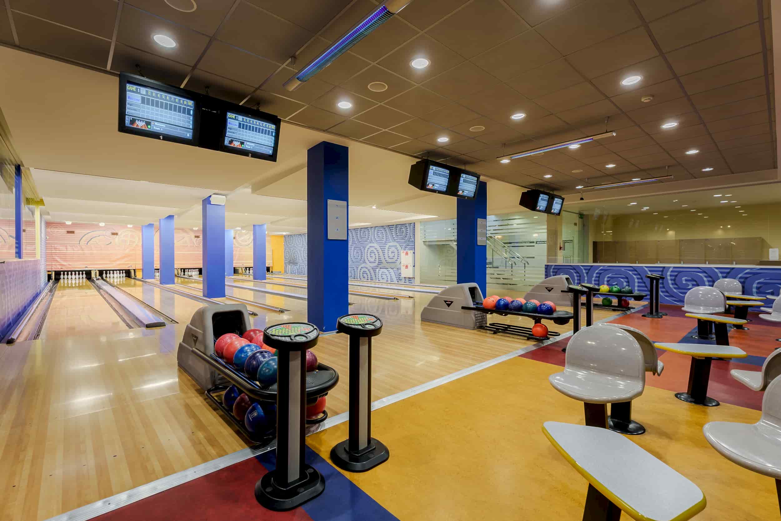Bowling alley is available only for private event rental: 150 EUR The price includes 6 bowling lanes, 2 billiard tables, darts, air hockey game, table football, bowling shoes and parking.